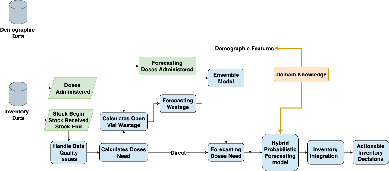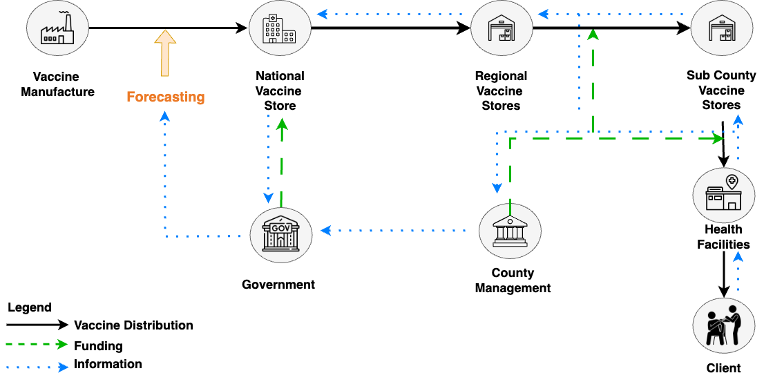 Forecasted vaccine doses based on historical usage adjusted for stockouts |
