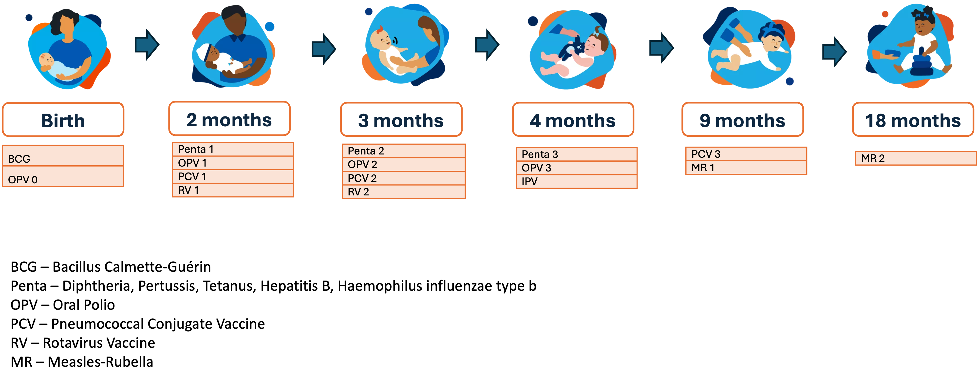BCG, Penta, OPV, Measles, PCV, Rotavirus |